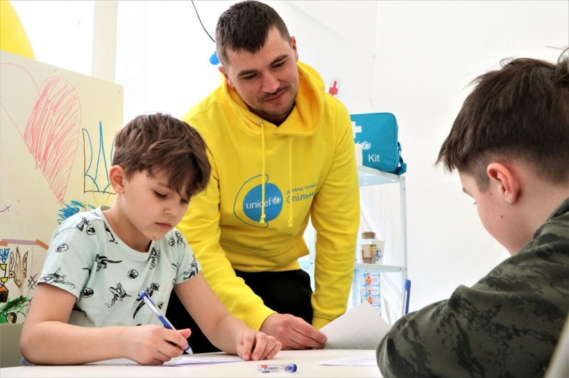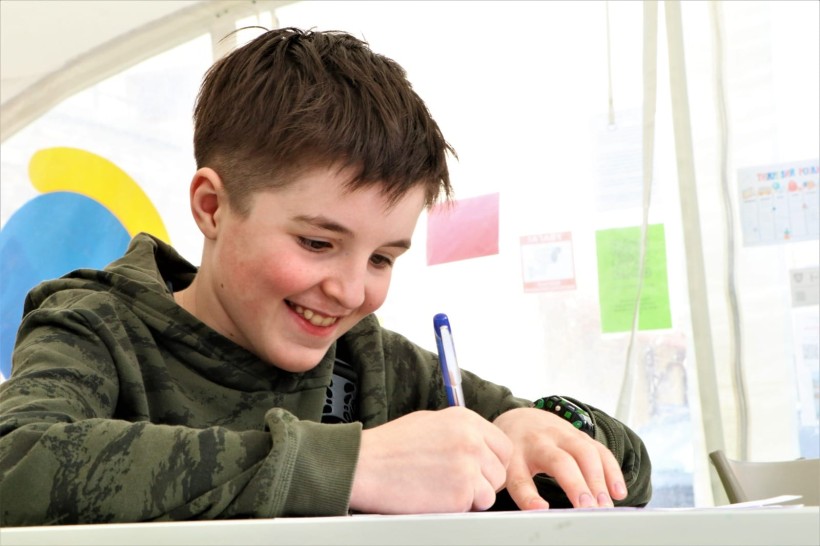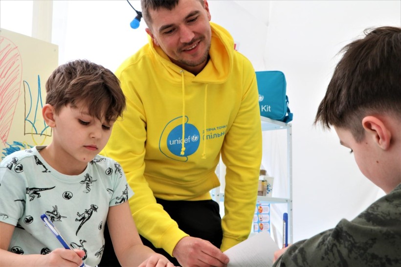 Писали диктант і відвідувачі однієї з ужгородських дитячих точок «Спільно», створених за підтримки ЮНІСЕФ. Тут до акції долучилися діти й дорослі.