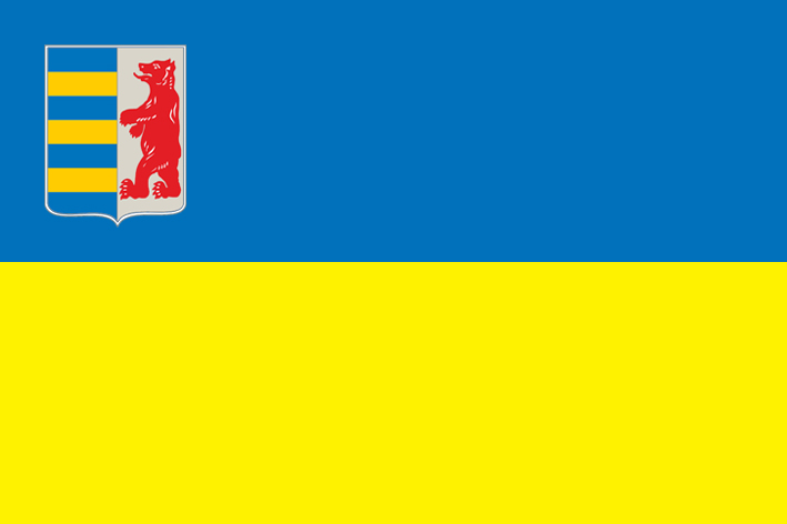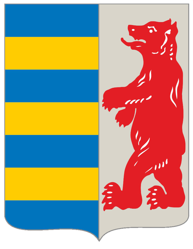У лівій частині щита на срібному фоні - зображення червоного ведмедя, що стоїть на задніх лапах, поверненого вправо.